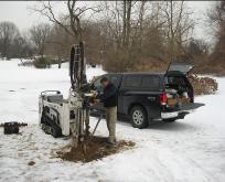 East Coast Geoservices, LLC (ECG) is full service geotechnical company, specializing in geological and environmental sampling, and groundwater monitoring well installations. ECG currently has two (2) Power Probe sampling apparatus that have both direct push and auger capabilities. The 9100 unit, mounted on a Bobcat MT-52, is a small versatile unit that is utilized to collect soil and groundwater samples in restrictive space environments. This unit can be taken into wooded areas without having to clear a path and inside buildings through 36 inch doorways. The 9600 unit, situated on a Ford F-550 flatbed truck, is a heavy-duty machine which can go deeper than the 9100 and utilizes larger augers allowing the installation of larger groundwater wells at deeper depths. The 9600 unit also has an Auto Drop Hammer which is utilized to obtain “blow counts” needed for geotechnical information.